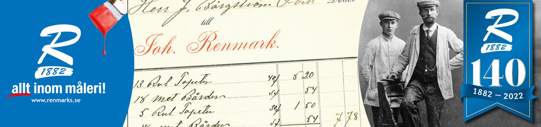 Renmarks Måleri är ett av Örnsköldsviks äldsta företag. Redan på mitten av 1800-talet började Renmarks att försköna och underhålla fastigheter. Våra verksamhetsområden består av måleri (både invändigt och utvändigt), blästring av fasader, lackering, tapetsering, fönsterrenovering, färgsättning, panelmålning (lösvirke) samt golvbeläggning (fogfria golv).
